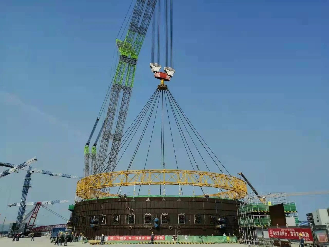 2022年9月,巨力索具提供高質(zhì)量的吊裝索具助力中廣核太平嶺核電項(xiàng)目2號機(jī)組安全殼內(nèi)穹頂?shù)跹b作業(yè)順利完成,巨力索具項(xiàng)目團(tuán)隊(duì)多次召開專題會(huì)對吊裝方案、生產(chǎn)工藝進(jìn)行深入研究,為項(xiàng)目吊裝工作順利進(jìn)行筑牢安全根基。