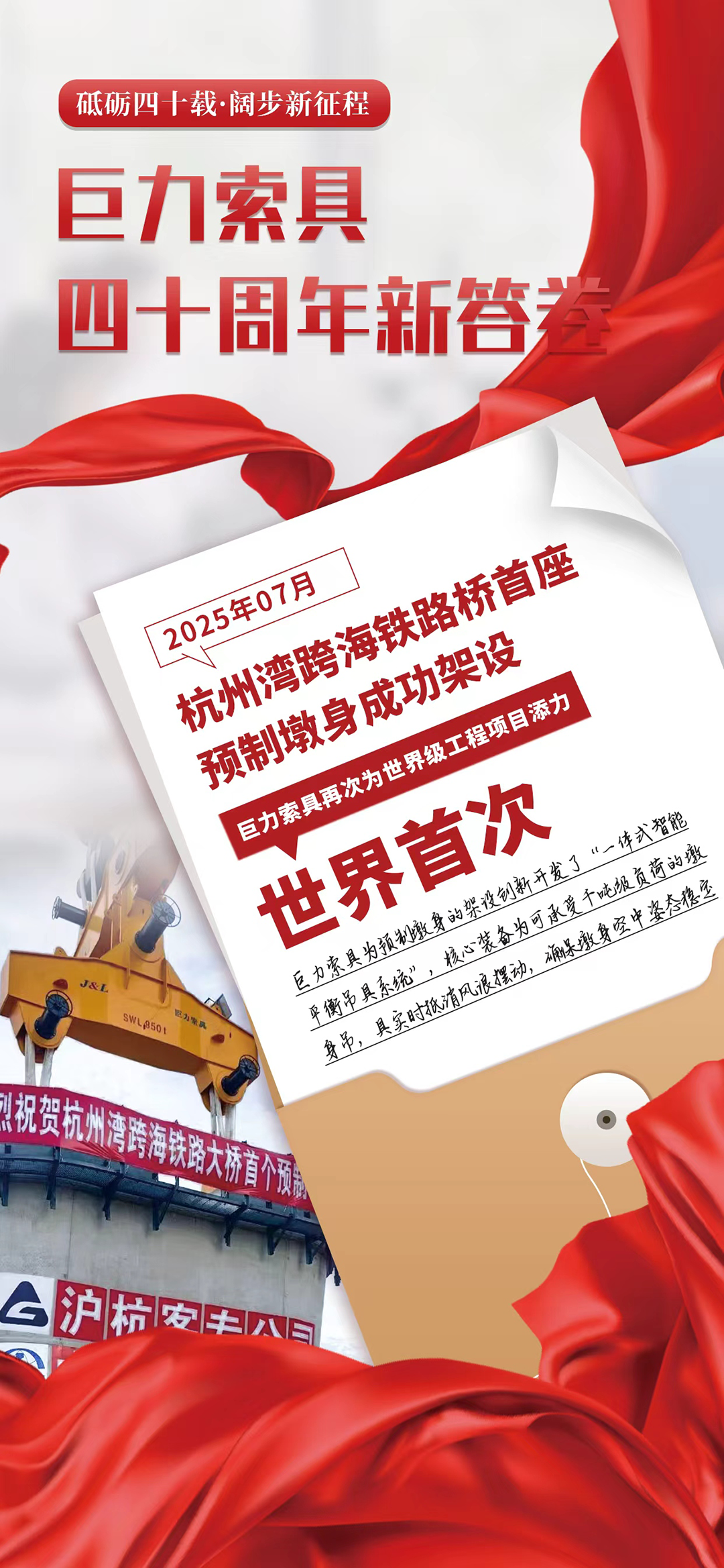 2025年11月8日,巨力索具迎來成立四十周年紀(jì)念日。四十年,對于巨力索具而言,是一段從無到有、由弱到強的崢嶸歲月,是一曲用汗水、智慧與堅韌譜寫的奮斗史詩。