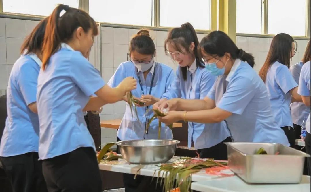 職工們其樂融融地親自動(dòng)手包粽子,