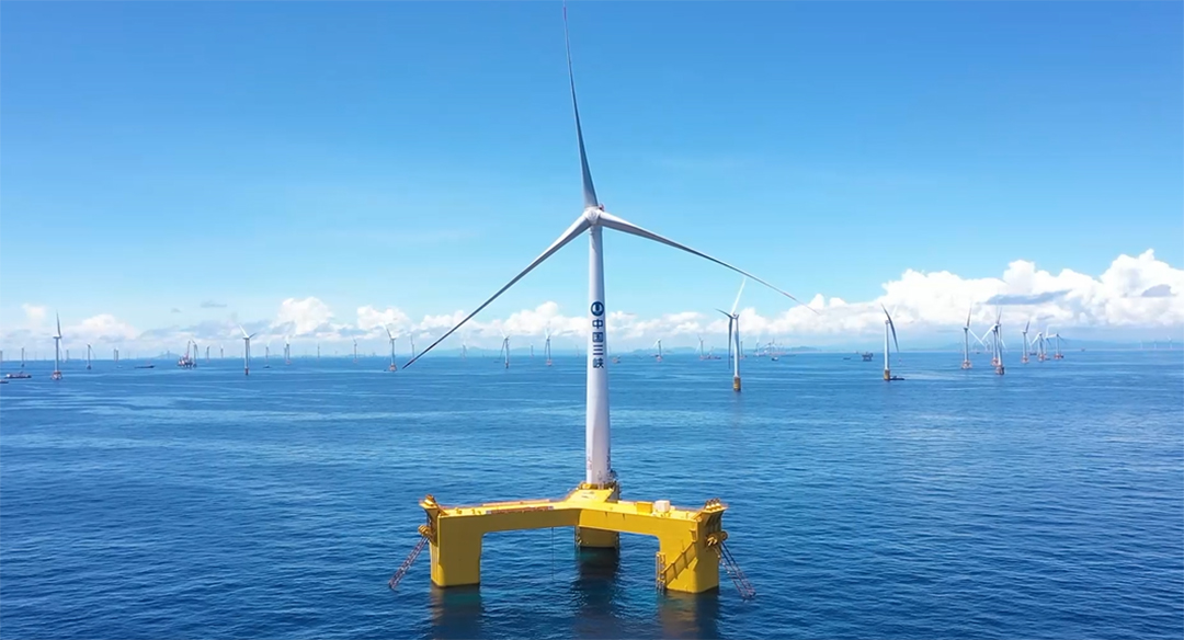 2021年12月7日,全球首臺抗臺風型漂浮式海上風電機組,在廣東陽江海上風電場成功并網發電。